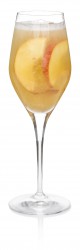 Coloque o Suco de Pêssego em uma taça de Champagne.